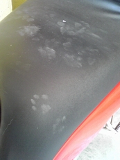 相変わらず欠伸をしてる。 そして先程と同じように僕を一瞥しダルそうに歩き始め、 駐車場の金網を潜ってどこかに行ってしまった。 暢気だな〜と思いながらバイクを見るとシートに足跡がクッキリ。 陽に照らされ温かくなっている柔らかなシート。 人慣れした猫は兎角登りたがる。 乗っかるだけならトヤカク言う事も無いのですが、 往々にして爪を研ぐ事があるので洒落になりません。 シートを爪で引っ掻かれると雨の後や洗車の後、水が滲みて尻が濡れるのです。 その状態でバイクから降りると猛烈に悲しい気分が襲ってきます、お漏らししたみたいで。 「勘弁して〜」とシートを見回しましたが引っ掻いた形跡は無さそう。 正直ホッとする。 そんな一日の始まりでした。